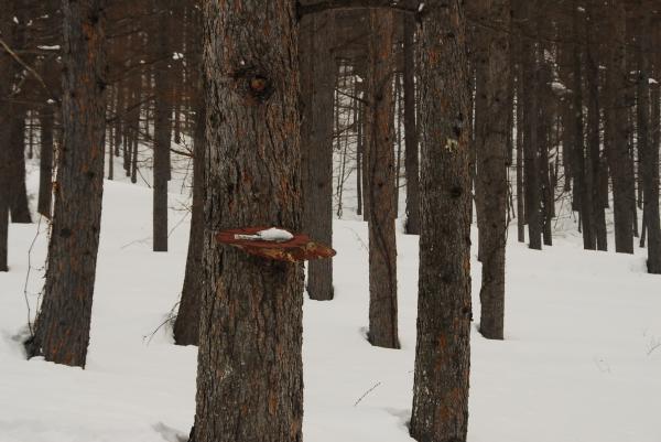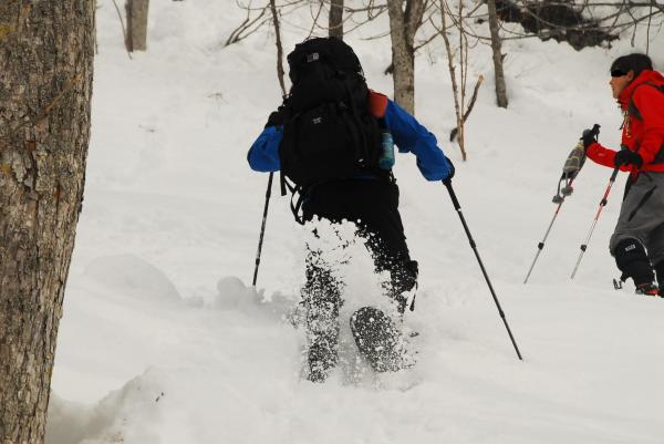 - スノーシューツアーでよく使用されるコースなので 今回はトレースはしっかりついていました。