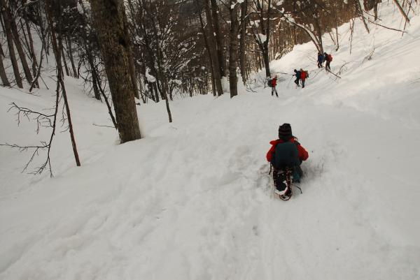ここの登りだけは スノーシューで登りにくい箇所なのでゆっくり慎重に。