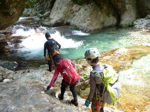 ただ、入渓ポイントからショートカットして山を越える場合、ロープが必要です。