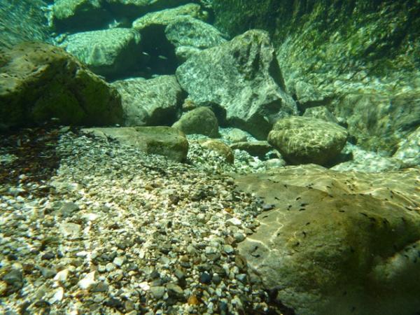 水の透明度と深い淵がおりなす何とも言えない青さは