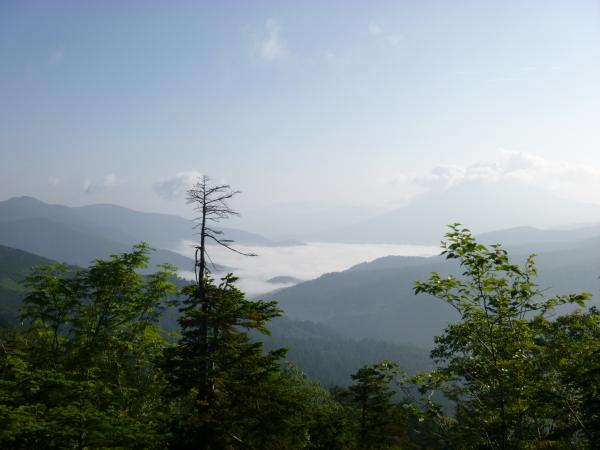 尾瀬の笠ヶ岳へ初めて登ってきました。鳩待峠から登っていくと、途中で尾瀬ヶ原を右側に見渡せる場所に出ます。朝早い時間だったからか、尾瀬ヶ原全体が霧に包まれていました!これは幻想的な光景です。まるで雲海のようにも見えます。そういえば鳩待峠で準備しているとき、至仏山の上空に笠のような雲がありました。もしかしたらそれが下に降りていって、釜の底のような場所にある尾瀬ヶ原にたまっているのかな、とも思いました。
