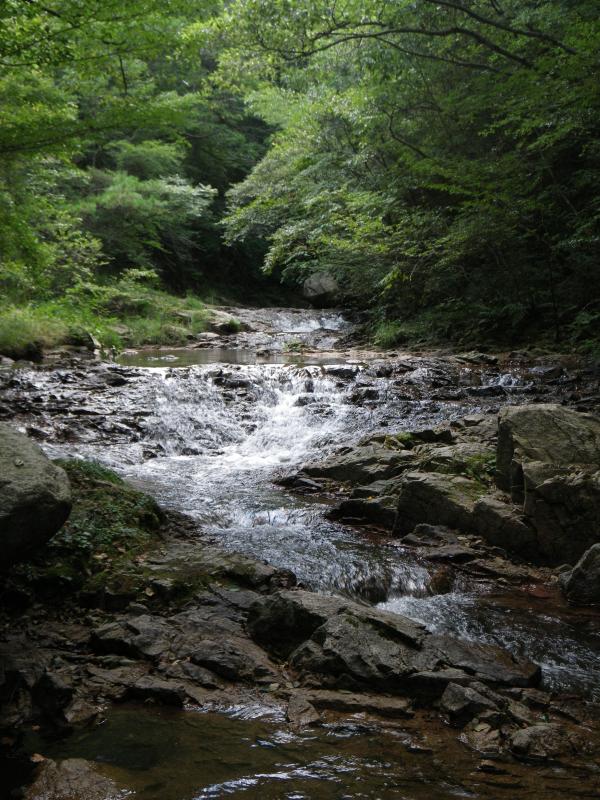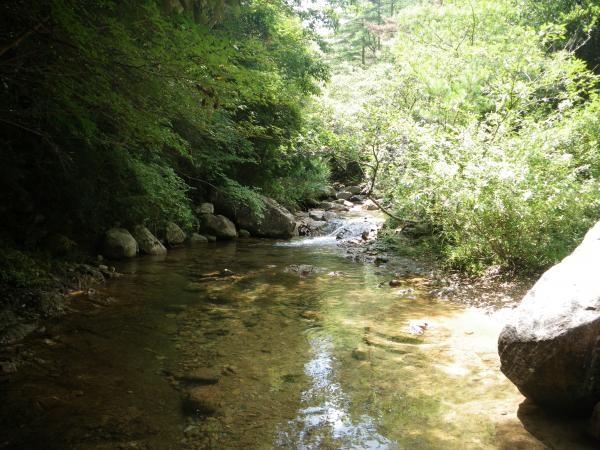 沢沿いに林道がありほとんどの場所で簡単に林道に上がれます。