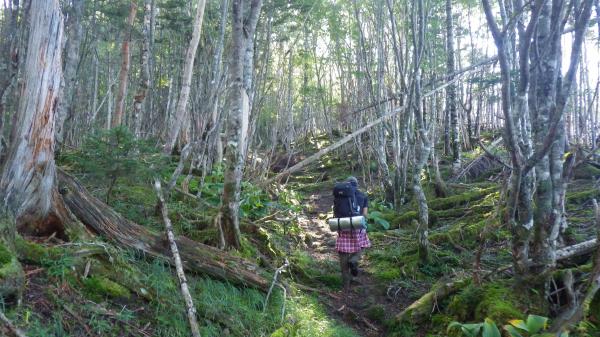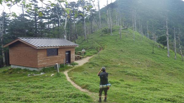 甲武信ヶ岳からサイト地の破風山避難小屋までの道のりは下りが多くスイスイ進めます。小屋の手前は木立と笹原の中を道が続くので、歩いててなんとも気持ちが良かったです。