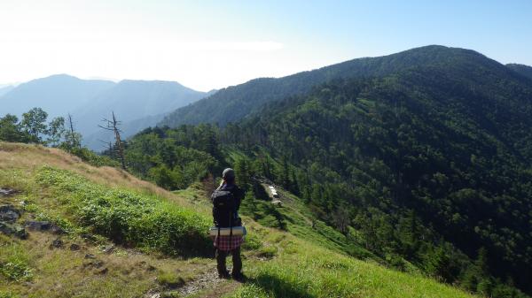 2日目は最初っから破風山への登り!標高が高いということと朝方ということで、昨日の徳ちゃん新道よりも快適に進むことができました。小屋の手前からずっと続く気持ちいい笹原の道を歩きながら景色をパシャパシャと撮影!晴れた山はやっぱりいモノです^^