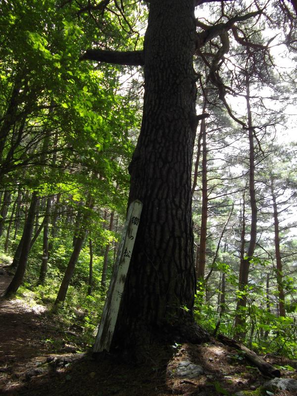 山頂(東峰)→(3分)→西峰→(10分)→金明水→(5分)→猿の松→(20分)→馬止の松→(20分)→戸倉山キャンプ場