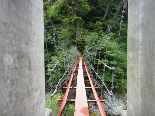 斜度がきついだけで単調な道と格闘し、一番下まで降りて、ダムサイド(中か!?)を歩いてトンネルに入る。ここを抜ければゴールである。いやぁ、案外早かった。途中、吊り橋の上を過ぎていく爽やかな風に昨日の寒さと冷たさを思い出して怒気怒気してしまったが、総じて言えばやはり・・