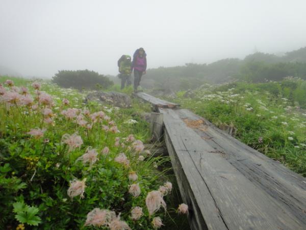 復讐ごときに気を奪われている私なんかとは違うのだ。雷に打たれたような心境で木道末端にいると、本当に降り出してきた。そそくさと雲の平山荘へ行き、受付を済ませてテントを建てて、お昼寝タイム。雨が止むことは無かった。