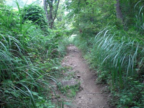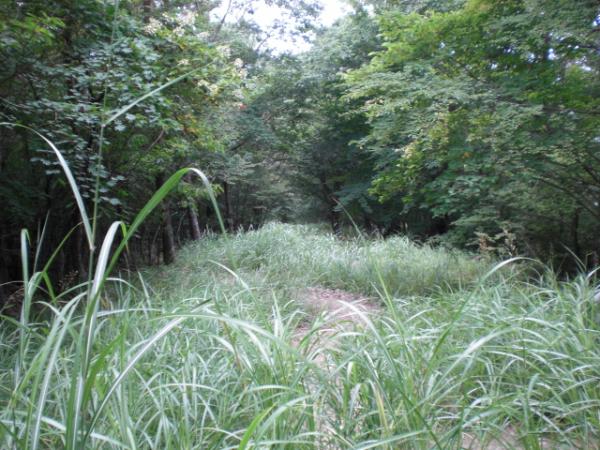 下山道は、西側の尾根沿いにほぼ直進となります。途中から笹の群生が続くので、笹ダニには注意が必要です。登りと違いかなり下りやすい道なので、あっという間に下れます。