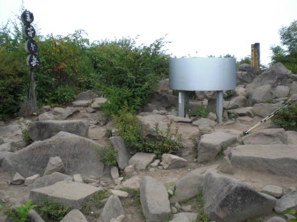 広い頂上からは、山々が望める最高の展望…のはずが、ガスって何も見えず。残念。