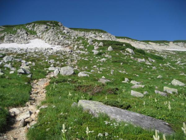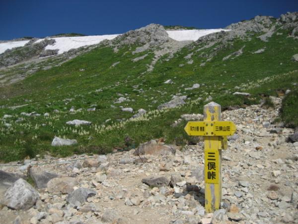 7月中であれば花見平~双六小屋や双六小屋~三俣峠‘巻道ルート’は残雪があるので、慎重に。