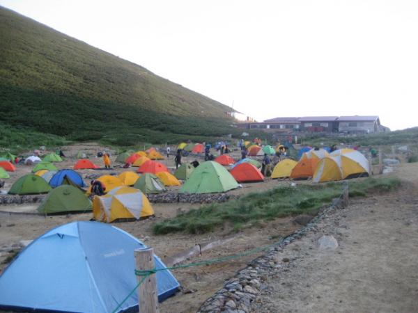 双六山荘のテント場はとても広く、水も豊富で何より展望がいい絶好の場所です。