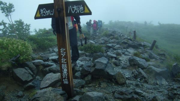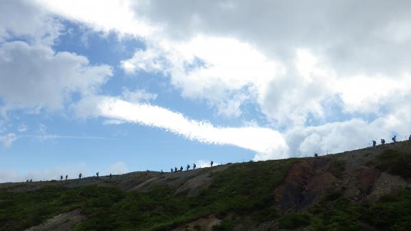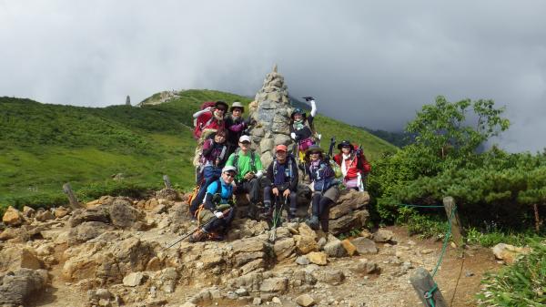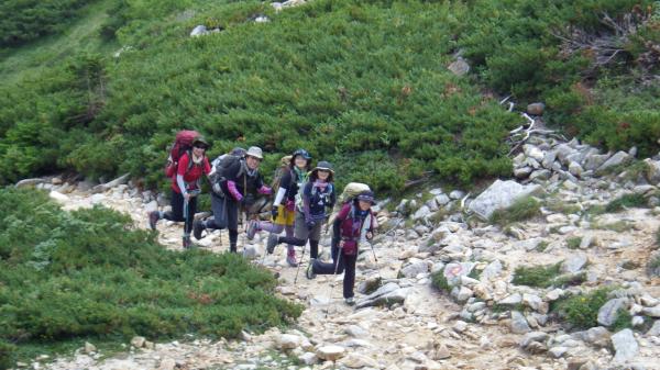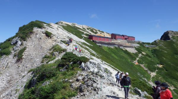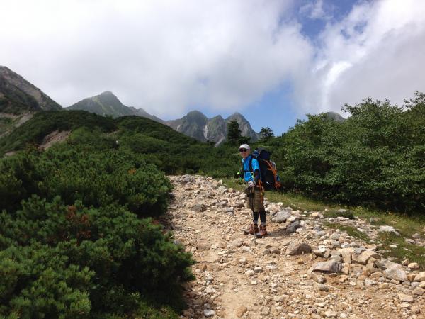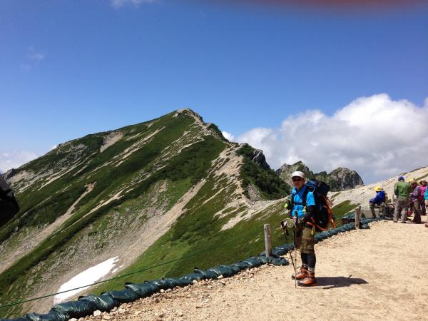 2日目は曇天の中、スタートしましたが、八方池を過ぎ丸山ケルンに着く頃には青空が広がってきて、不帰キレット方面もきれいに望むことができました。