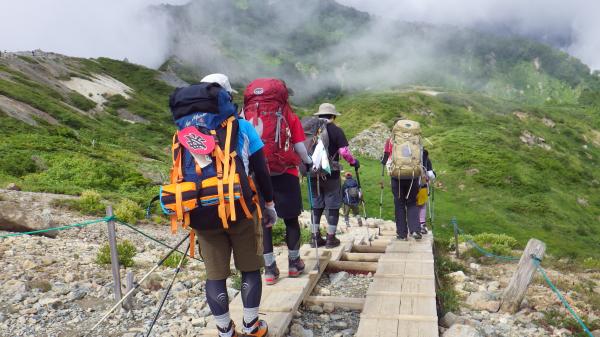 当初、白馬三山テント縦走を予定してましたが降雨の為雪渓は危険と判断、日程の短縮もあり行先も唐松岳小屋泊まりに変更しました。