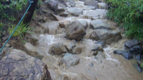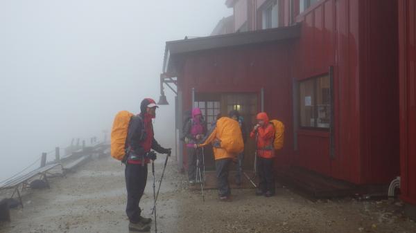 最終日、前日の天気予報では午前中晴れの予報でしたが、早朝より雷雨。急ぐ行程ではなかったのでみんなでトランプや人生ゲームをしながら雷が通り過ぎるのを待っていましたが結局昼過ぎになっても雷は鳴り続けたまま。少し弱くなったタイミングで大急ぎで下山しました。