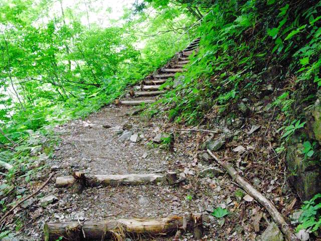 コースも整備されていて急斜面には丸太作りの階段も設置されています