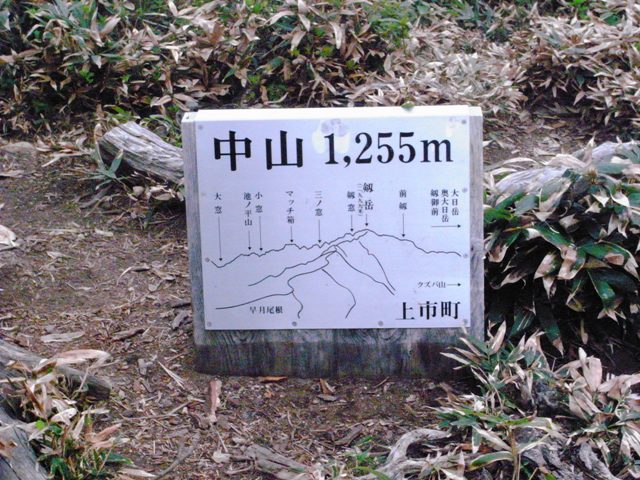 - 登山口(0:50)1,100m地点(0:15)中山山頂(0:45)登山口
