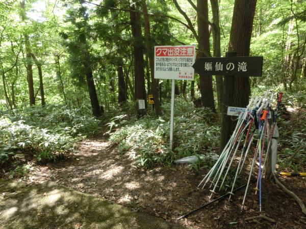 滝がある登山コースというのは、常に足場は滑りやすいです。滝まで下っていくので、ストックは必須です。