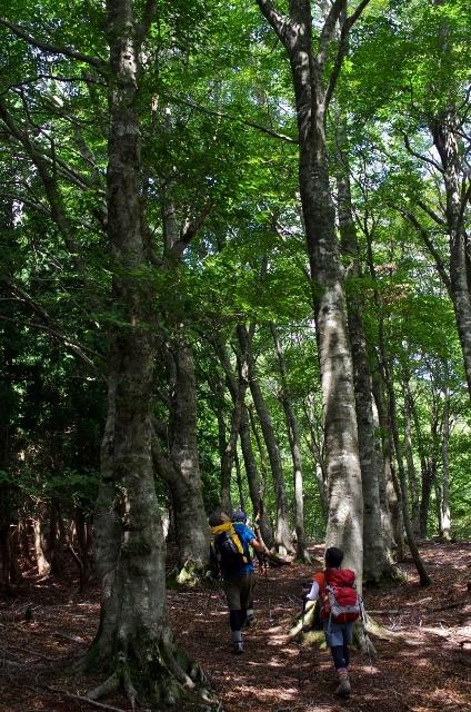 今回は贅沢に車2台で向い、ゴール地点の木地山バス停に1台をデポし、もう一台で横谷峠まで入りました。車での移動中に少し降られましたが、車を降りてからは予報通りの快晴。気温も登りで少し汗ばむ程度でとても快適でした。時間に余裕があれば、与助谷山からさらに先のトレイルを楽しみ、木地山峠から北谷を下るコースも楽しそうです。