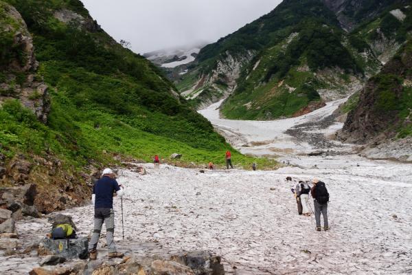 大雪渓は大分雪が少なくなっていましたが、固く凍っているので軽アイゼンは必須装備です。