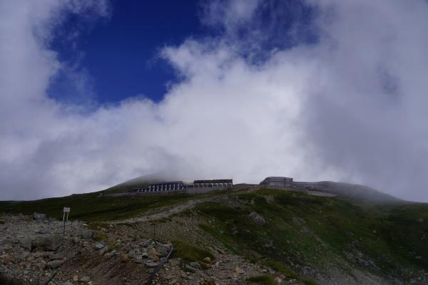 大雪渓を登り、避難小屋がある辺りからガスの中に突入。高山植物はまだ花が咲いているのもたくさんあり、さすが高山植物の宝庫だと感じました。