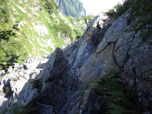 不帰ノ嶮はクサリ場の続く難路なので十分注意しながら通過。落ち着いて三点指示で確実に進みます。