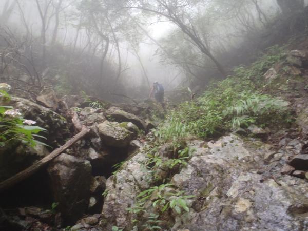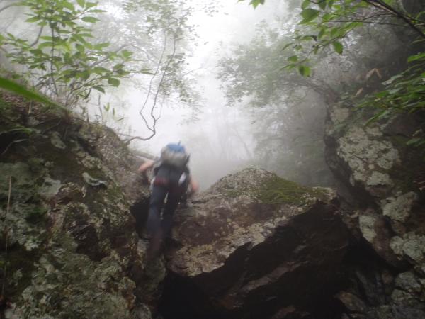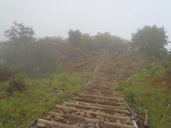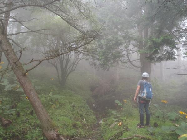 登り始めは快晴で快適でしたが、すぐにガスってきて湿度が高く止まっていても汗が止まらない状態でした。