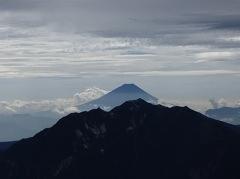 最初は林道を歩き、仙水峠までわりと平坦な道を歩きます。仙水峠で視界が開け、目の前に鳳凰山のオベリスクが顔を出し、更に奥には我らが富士山が!いつ見てもお美しいです。
