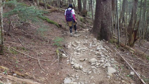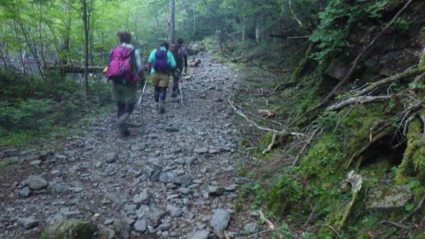 - 沢沿いの林道を歩き、岩がゴロゴロが仙水峠まで続く。そこからまた林道で高度を上げ、駒津峰へ。