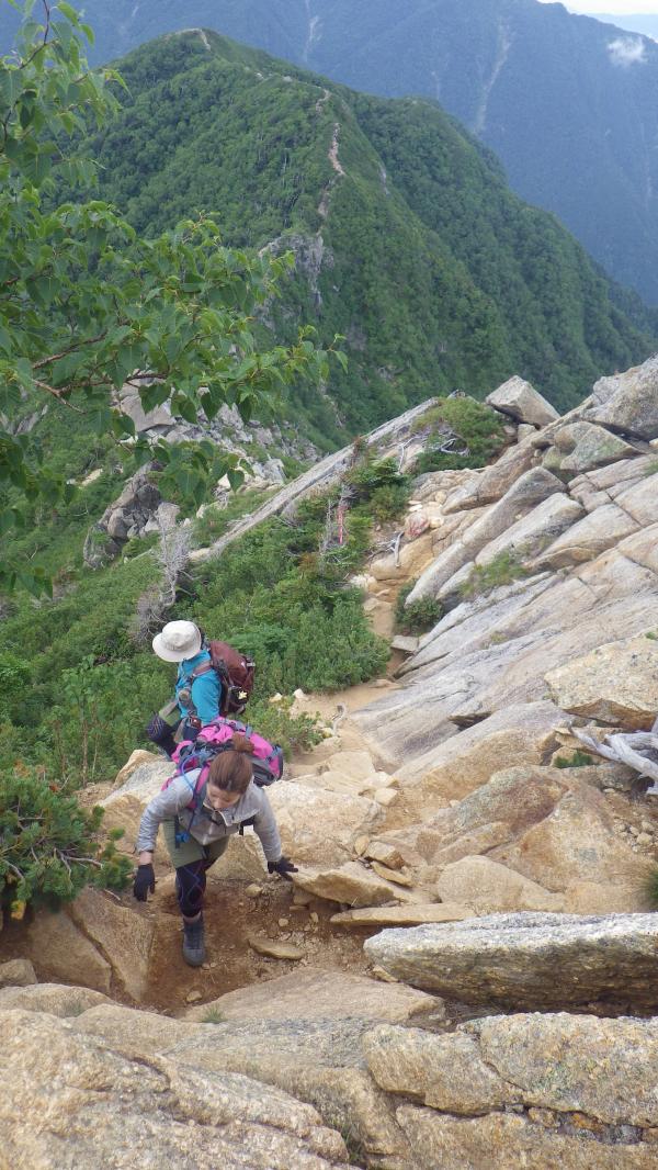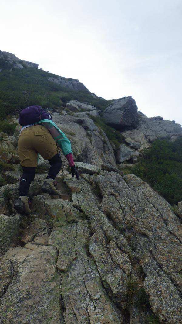 さて、本番です。花崗岩の白い岩々をまたいで、よじ登っていきます。天然のアスレチック、楽しい!ちょっと高所に弱いSARYメンバーのYちゃんはビビってました。風が強く吹くと後ろに吹き飛ばされるんじゃないかって少しドキドキします。慎重に這いつくばっていきました。
