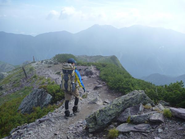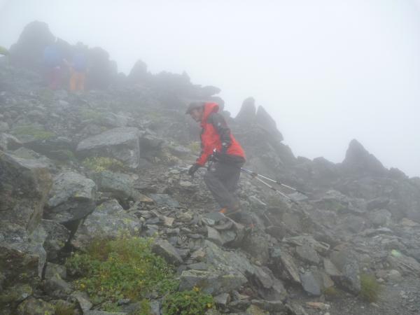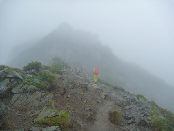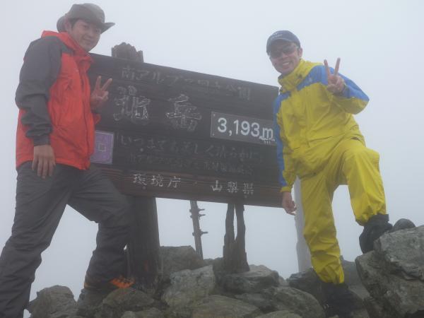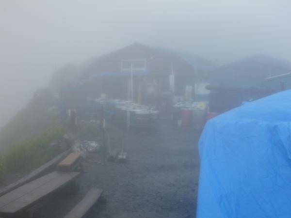 今回の目標は、二泊三日で白峰三山を縦走する予定でした。しかし、広河原からずっと雨になってしまい、稜線上は暴風雨でした。テントも張れずに小屋に泊まらざるをえず、翌日も天候があまり良くないということで、朝、霧で真っ白の北岳山頂だけ踏んで下山しました。