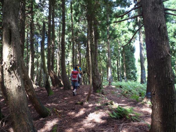 8月の末とは言え、まだまだ暑い低山歩き。覚悟して挑みましたが、歩き出せば何と快適な樹林歩き。木陰のお蔭でメリノウールの長袖Tシャツを着ていましたが、暑くて仕方がないとは全く思いませんでした。時折吹く風も何と爽やかな。