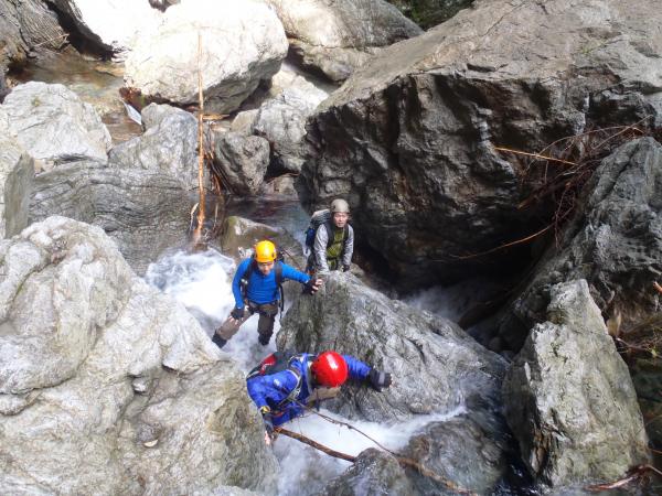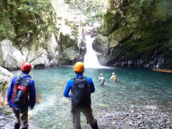 - 筏場駐車場 ⇒80分⇒ 屏風滝 ⇒10分⇒ 五色湯(寄り道する)⇒120分⇒ 5m滝 ⇒20分⇒ 釜ノ公谷出合い ⇒50分⇒ 筏場駐車場