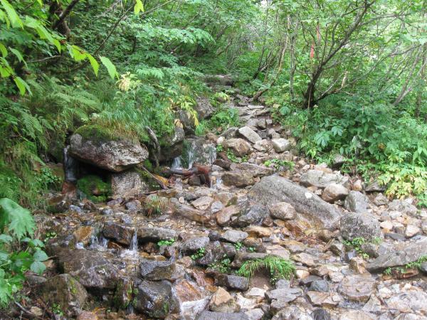 ○登山道のいたるところが湧水で沢のようになっているので、スパッツはあると