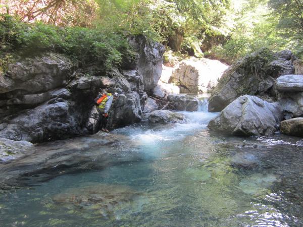 駐車場からすぐに入渓できますし、沢沿いに登山道があるので途中で引き返すこともできます。