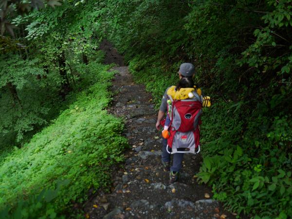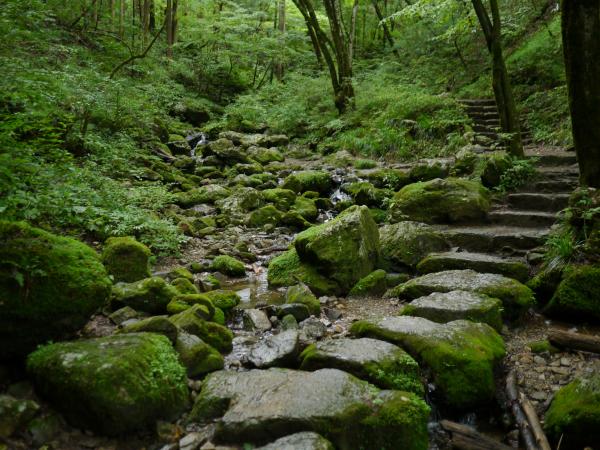 - 御嶽山駅から山頂までは舗装されています。ロックガーデン方面は山道で、途中木の根や、岩が濡れていて滑りやすい。