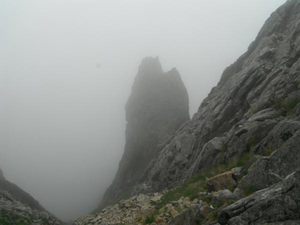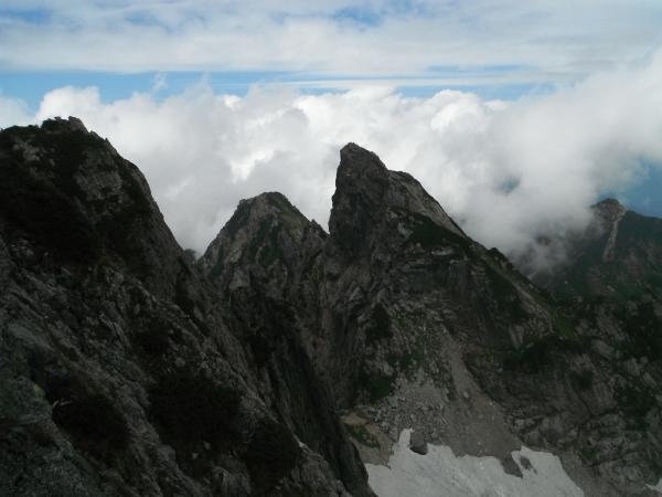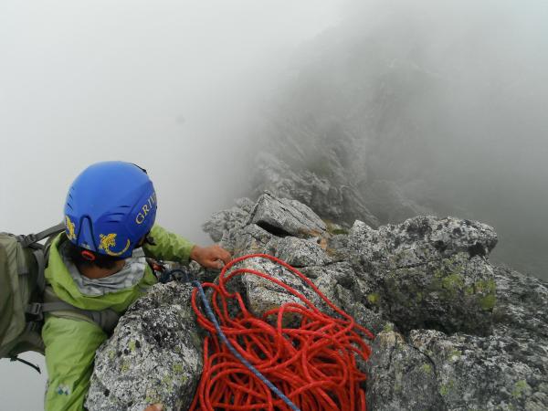 10日 テント場(40)池ノ谷乗越(60)三ノ窓(15)登攀(360)チンネの頭(120)テント場