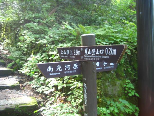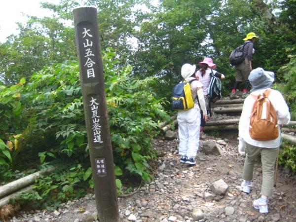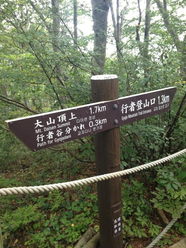 - 夏山登山口→(60分)→5合目→(60分)→8合目→(20分)→大山山頂→(30分)→6合目→(15分)→行者谷別れ→(22分)→元谷→(15分)→大神山神社奥社→(15分)→夏山登山口