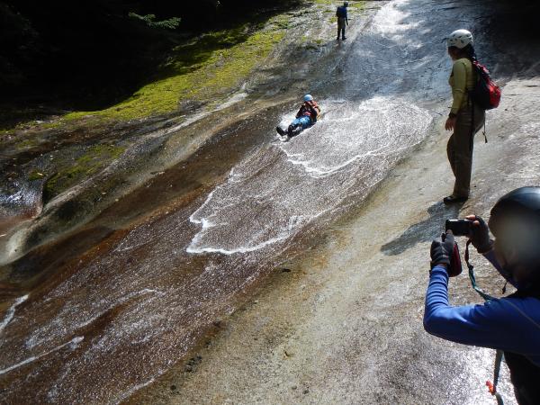特にところどころに出てくるナメ滝で行うウォータースライダーは最高!