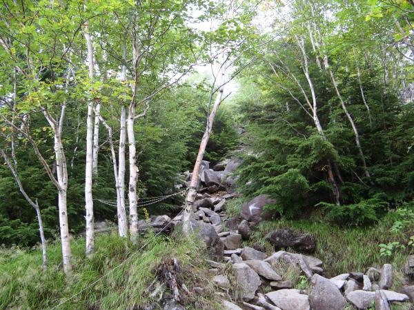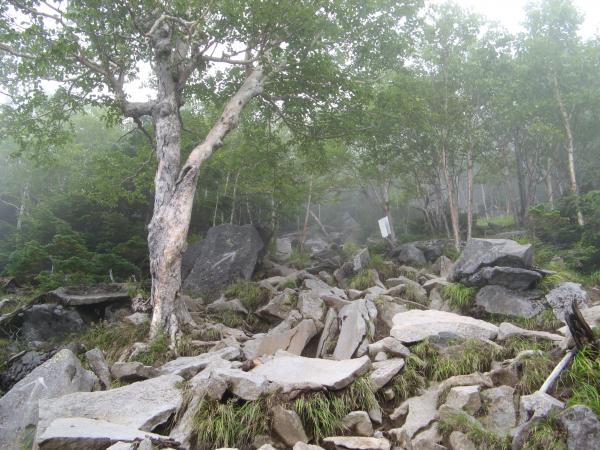 三合目に着く頃には身体もなれてリズム良く歩けるようになりました。しかしここからは熊注意区間。熊鈴がないのでたまに手を叩きながら歩き、なんとか熊に会わず四合目に到着。