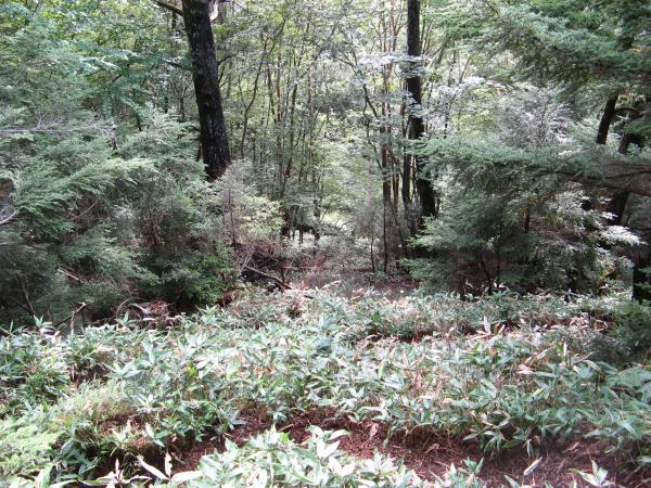 見晴らしの良い尾根歩きは帝釈山までで、ここから樹林帯の道を一気に下っていき、富士見平に着けば後は林道歩きになります。