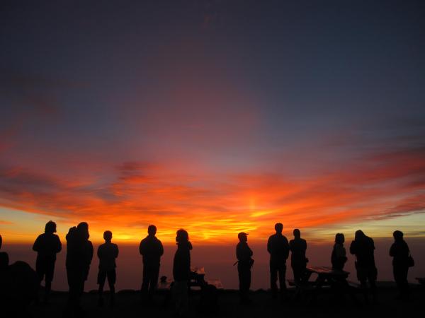 私たちは朝食は後回しにし、ご来光を見に外へ出ました。