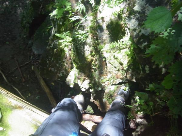 降りるときは倒木を利用して降りることになる。滑りやすいので注意しよう。
