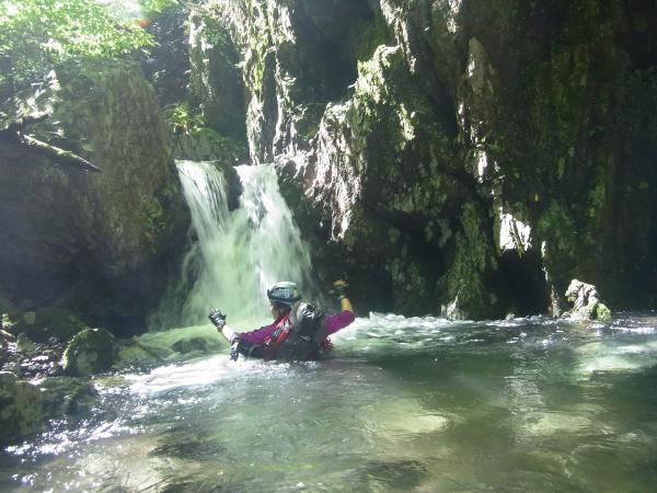F6 きれいな釜を持つ3m滝は釜の深さが胸まであった。