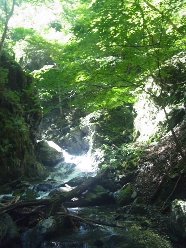 志渡淵川のグレードは1級下程度で困難な滝はなく、小滝がいくつもかかり