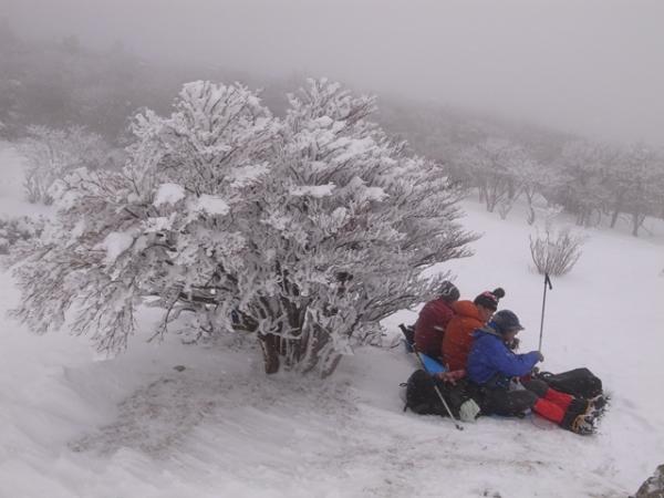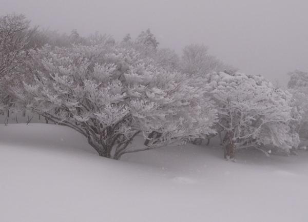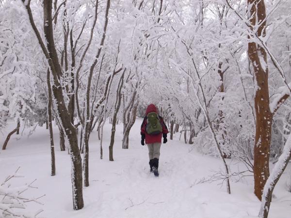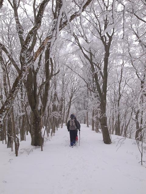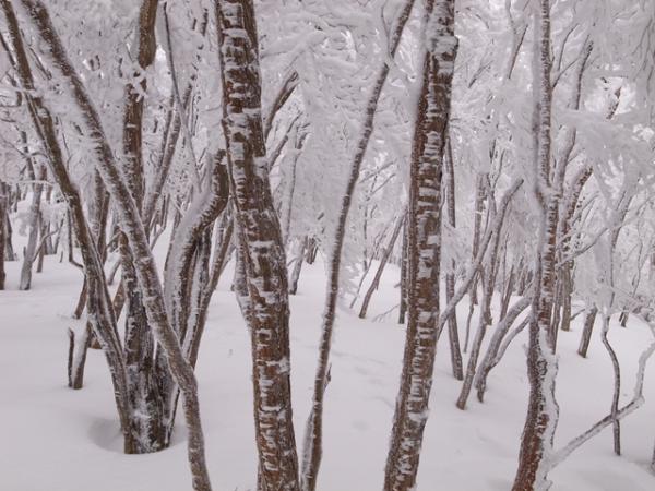 - 11日の寒気流入の後で新雪と霧氷がきれいでした。積雪自体は多いわけではないのでルート上は圧雪状態で快適です。踏み跡以外でも足首が隠れる程度です。