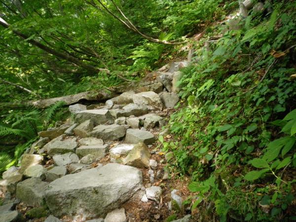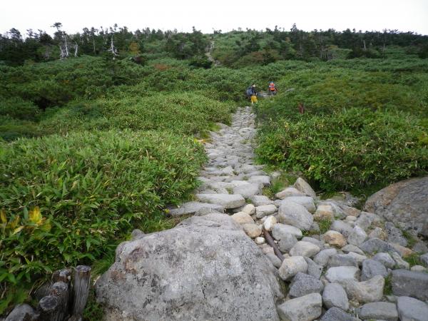 - 「最近の砂防新道は整備されすぎてつまらん」と言う地元の人が居るほど、砂防新道は整備が行き届いています。ただし登山道のすぐ近くで砂防ダムの工事をしているので、重機の音などが聞こえてきて、少々騒がしい感じです。