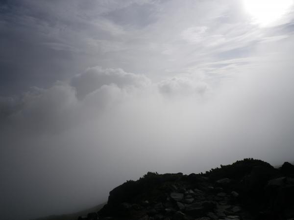 2日目は観光新道、越前禅定道で市ノ瀬まで下山の予定でしたが、朝から雨で風もやや強めだったため、山小屋のスタッフの勧めで禅定道は断念。観光新道も傾斜が急な下りがあり危険と判断し、砂防新道で下山しました。