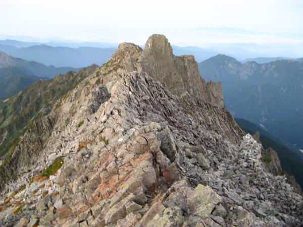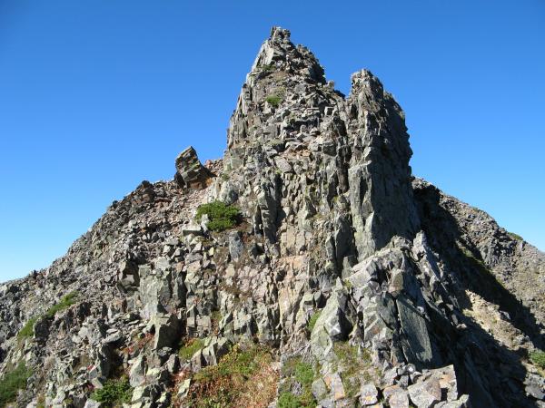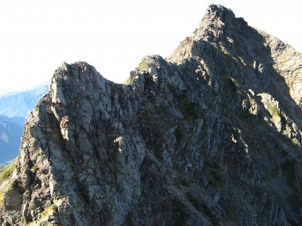天狗のコルまでくると約半分。しかしここからルートのアップダウンが半端じゃない!浮石や崩れやすい岩場の急斜面を登ったり下りたり。