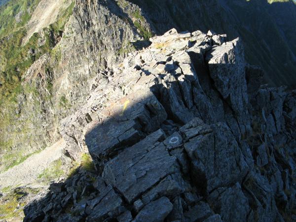 私は1箇所だけナイフリッジを通過するときに短い距離だったのですが「かなり危険な場所だな~」と感じながら超慎重に通過し、終了点で振り返ると歩いたルートの反対側にマークが付いていて「やっぱりそうか」と思った場所ありました。