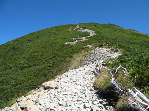 ここからのルートは今までに比べればとても歩きやすい道。登山者も増えてとても賑やかでした。